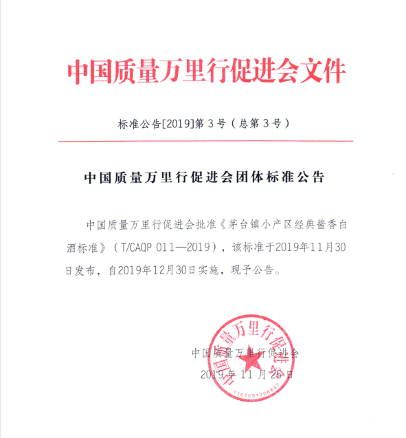 中國質(zhì)量萬里行促進(jìn)會關(guān)于《茅臺鎮(zhèn)小產(chǎn)區(qū)經(jīng)典醬香白酒標(biāo)準(zhǔn)》、《高品質(zhì)蜂蜜》兩項團(tuán)體標(biāo)準(zhǔn)發(fā)布的公告