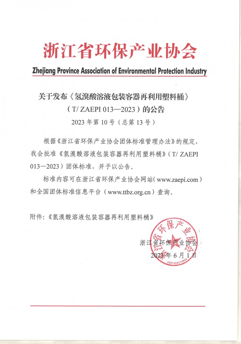以上為浙江省環保產業協會關于發布《氫溴酸溶液包裝容器再利用塑料桶》(T/ZAEPI 013—2023)的公告(2023年第10號(總第13號))的檢測服務介紹,如有其他疑問可聯系在線工程師!