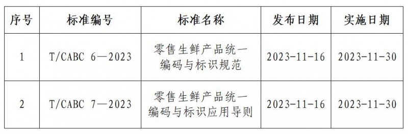 1.《零售生鮮產品統一編碼與標識規范》(T/CABC 6—2023)團體標準部分內容